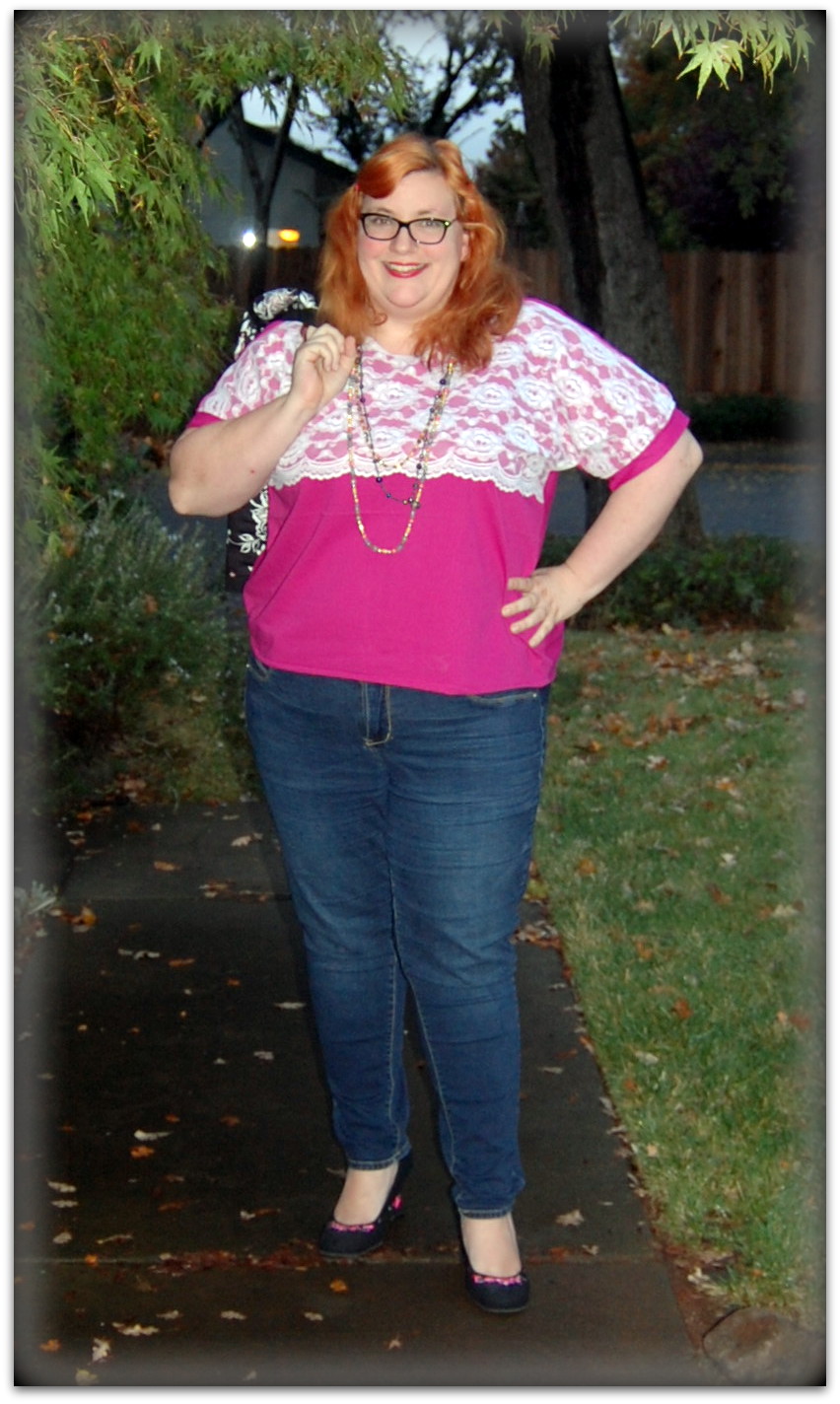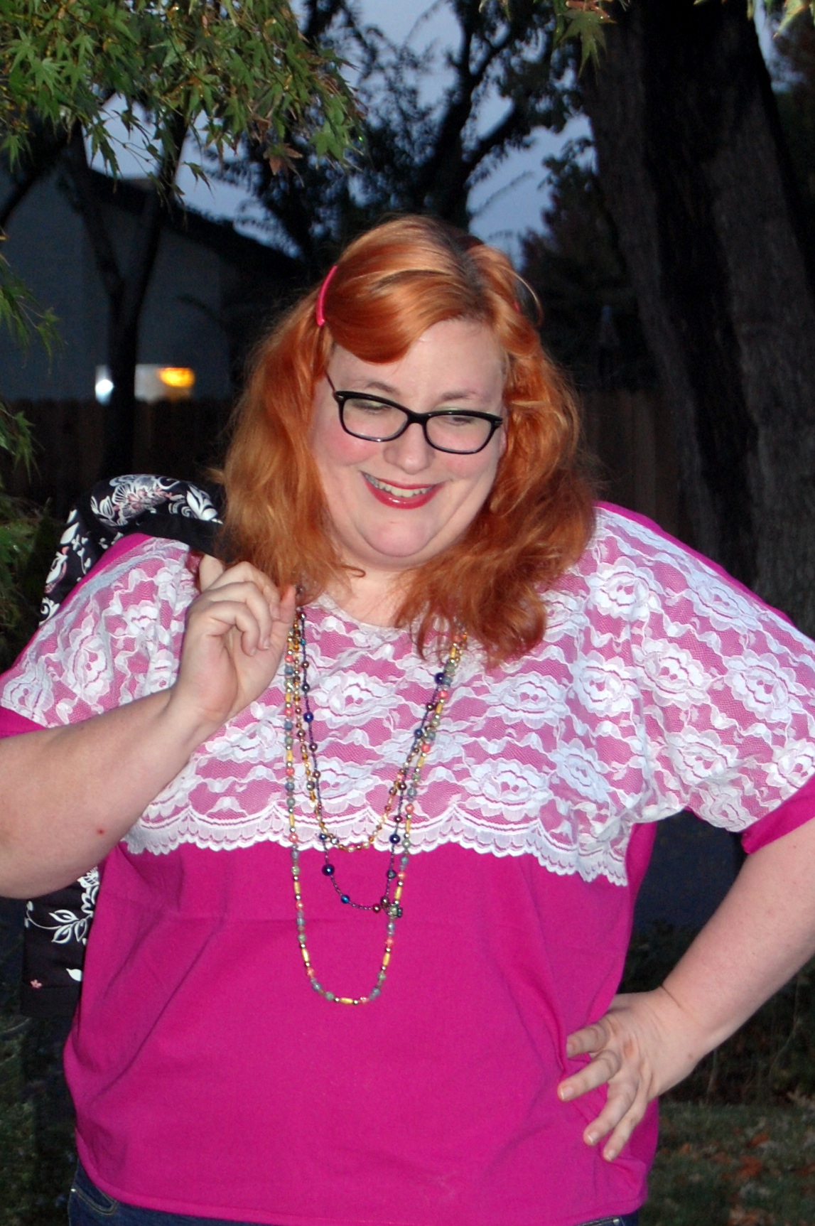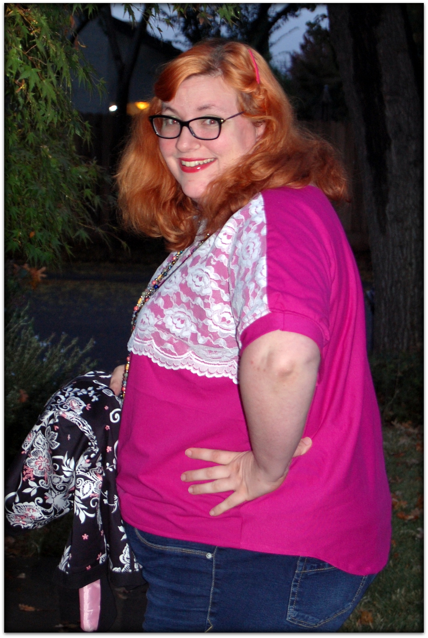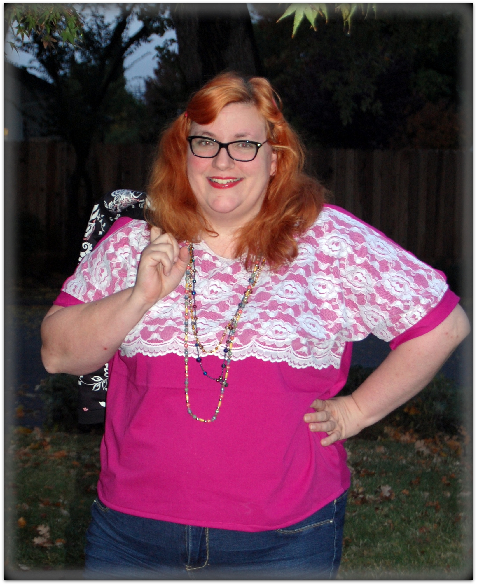 Seamingly Smitten Fall 2014 Pattern Tour & Giveaway – Lace Front Knit Top Ronda Bowen, November 13, 2014 Seamingly Smitten Sewing Patterns Blog Tour *I received a free pattern for the Lace Front Knit Top by Seamingly Smitten Sewing Patterns in exchange for providing a stop on the tour. All opinions are my own. I am lucky enough to be the first stop on the Seamingly Smitten Sewing Patterns Fall 2014 Pattern tour. I had a lot of fun with this one; I chose to make the Lace Front Knit Top. I have a lot of fabric (by a lot I mean my fabric closet is overflowing) that I’ve found recently at thrift stores and online for rock bottom prices. The fabric I used for the top was only $.98. That’s right; I made a shirt for ninety-eight cents. The pink knit I used was fifty cents, and the lace was forty-eight cents. Crazy, right? Of course, I had to purchase thread to match the pink knit, but that will be used in other projects in the future as well. What I loved most about this pattern was that it was so easy. Even though I had to take baby-tending breaks, the shirt itself took about 20 minutes to stitch. The hem took a bit longer. I made the size XL based upon my measurements. My fabric is waiting! Printing out and taping together the pattern took a bit longer than I’d hoped, but I think that’s because I’m hopelessly neurotic when it comes to matching PDF patterns up. I made a couple of adjustments when cutting the pattern – I added an inch to the length because I prefer my shirts a bit longer (I have a Momma pouch which provided a very loving and safe home for two incredibly precious people), and I didn’t cut across the cut line for the top. That is because I decided to use a scallop-edge lace for the top instead of the straight edge in the picture. Then, I made my first mistake. Yup, those things happen. Shhh…I totally forgot to pre-wash my fabric. I have no idea what will happen to my gorgeous shirt when I wash it. I was so excited about getting started cutting things out…that I totally spaced on pre-treating the fabric! Then, I made my second mistake. You see, originally, I’d thought I’d do the shirt with a really soft really luxurious red jersey I had that I got for about the same price as this pink. But, I didn’t have enough of that fabric for this shirt. So, I was excited when I folded the pink fabric and there was plenty. You know what I’m going to say next, don’t you? That’s right. I totally cut the fabric with the stretch going the wrong way. Oh, and I realized this after I’d already cut out the back, and I’d gotten halfway through cutting out the front. GAH! So, I continued on my journey. The instructions for the pattern were really clear and straightforward. That didn’t stop me from making mistake number 3. I read the directions probably 2o times before starting to sew. Somehow I missed the word “baste” in the whole stitch the lace to the shirt step. So, I stitched and then turned the fabric, creating a finished neckline and sleeve. It actually worked in my favor because I didn’t have to hem the front neckline – yay! I decided to add the cuffs at the very end, because I felt that it needed something, and I definitely am happy with the way they look! I carried on with no further incident. I decided to topstitch around the neckline and sleeves just before they meet the cuffs – partly because I liked the way it looked in the test photos for the pattern, and partly because I felt it needed a little more. I love how it turned out. Here are some pictures, underneath them, you’ll find information about the giveaway, and a coupon code you can use to get your own Lace Front Knit Top pattern from Seamingly Smitten. I’m thinking that I need to make another of these shirts – I’ll extend the lace a little further down, and do navy blue on navy blue. I’m then thinking I’ll hand-bead the lace to make a dressy knit shirt that I can wear out on date night. – FUN! – -Giveaway- If you like this pattern and the others you see during the pattern tour, you can head over to the Seamingly Smitten Etsy shop and use the coupon code PATTERNTOUR50 to recieve 50% off of your purchase through the rest of November. -and- You can enter the Rafflecopter giveaway to try to win. The pattern tour will run from November 13th through the 21st. Here’s the schedule again (with links): November 14th: From Cornfields to Cowboys November 17th: The Lady and the Gents November 18th: Pattern Revolution November 19th: Crafty Biggers November 20th: Gracie Oliver November 21st: Uku Chic There will be 3 winners for the giveaway: First prize: $50 to fabric.com and 6 free Seamingly Smitten sewing patterns Second prize: $30 to fabric.com and 4 free Seamingly Smitten sewing patterns Third Prize: $25 to fabric.com and 3 free Seamingly Smitten sewing patterns a Rafflecopter giveaway Good luck! Related articles Red White & Blue Thrift Store 39 Ways to Upcycle Your T-Shirts Fabric Buying Guide 3 Ways to Turn a Thrift Store find Into a Great Investment Review and Commentary 100 Thrift Store Items, More Crap! From Fishwife Games For Your Old School Post Apocalyptic Campaigns Share this:Share Share on Telegram (Opens in new window) Telegram Print (Opens in new window) Print Share on Reddit (Opens in new window) Reddit Share on WhatsApp (Opens in new window) WhatsApp Share on Tumblr (Opens in new window) Tumblr Email a link to a friend (Opens in new window) Email Share on LinkedIn (Opens in new window) LinkedIn Share on Pinterest (Opens in new window) Pinterest Share on Facebook (Opens in new window) Facebook Share on X (Opens in new window) X Like this:Like Loading... Related Hobbies and Crafts sewing