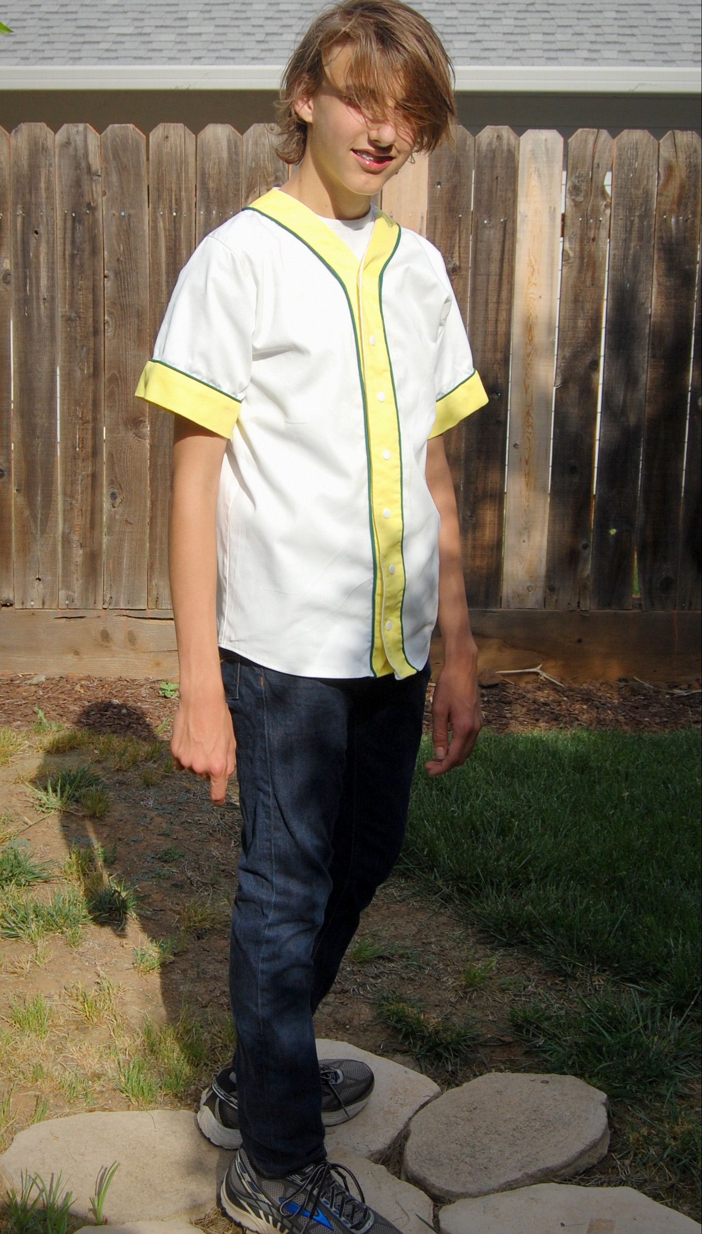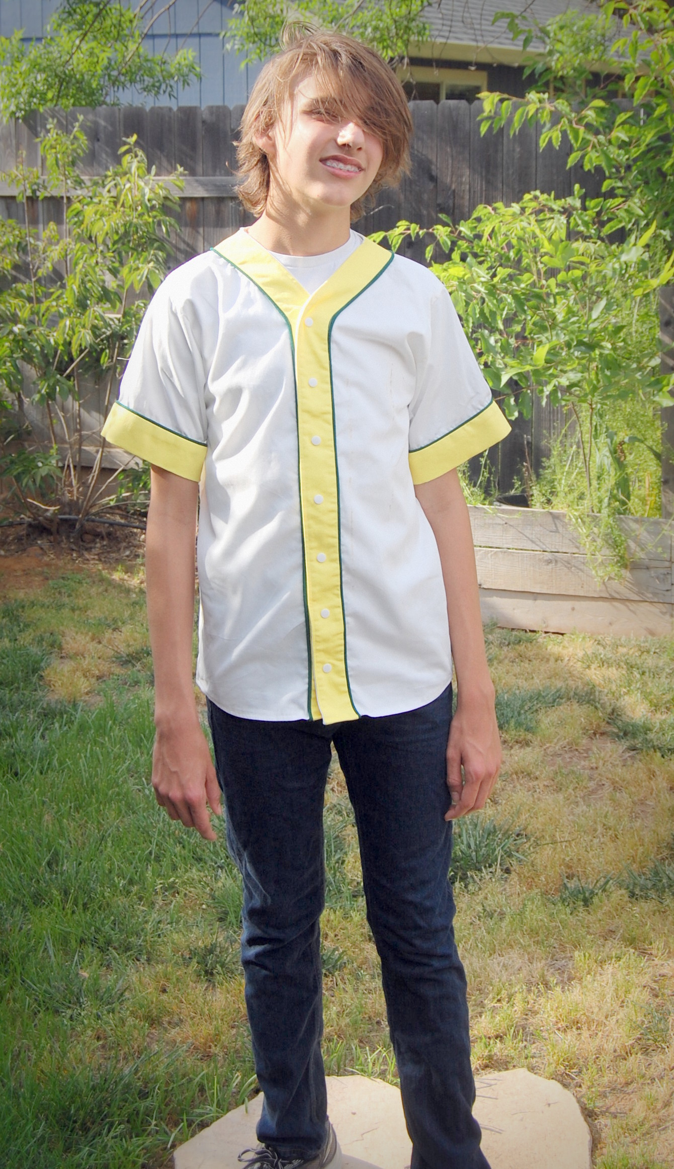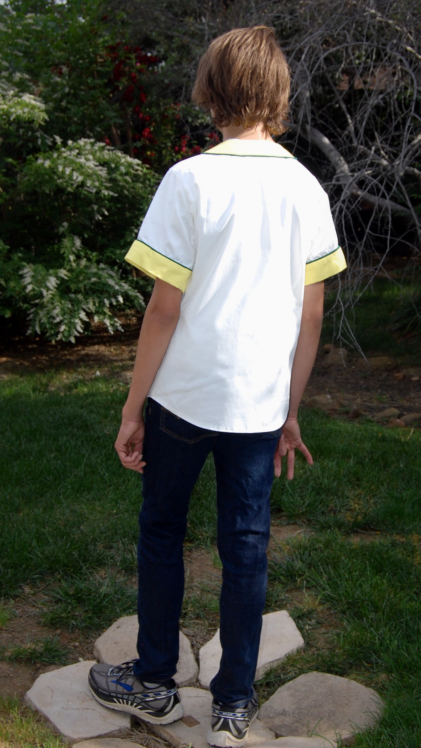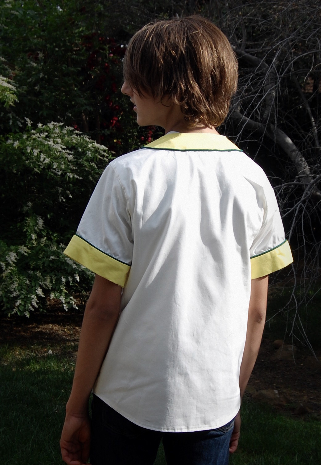 Something Cool for the Teenager Ronda Bowen, April 23, 2015 So around here, I spend a lot of time making things for myself and the toddler. I have a few great men’s patterns to bust out – and I even got some nice fabric to make my husband some shirts. I’ve got a robe “in progress” for the teenager – but I haven’t finished it. I need to have a UFO weekend around here sometime and finish up all the things I’ve cut or started, but not sewn or finished. But for now, I have finished something for the teenager, and I think it’s pretty cool. Dandelions ‘n’ Dungarees Adult Old Tyme Baseball Shirt It’s no secret that around this house we love baseball. In fact, baseball season is about the only time the TV cable gets turned on around here (the other time is when someone is sick…but even then, it’s to watch marathon episodes of something terrible like Teen Mom). In our house, there’s a pretty big rivalry, since we’re fans of AL West teams – Wining Husband cheers for the Seattle Mariners, and the teenager and I cheer for the Oakland Athletics. I’m not sure who toddler girl is a fan of, but at the moment, it looks like it’s the Los Angeles Angels (each of these are affiliate links – and the only three in this article), since, well…she cries any time we watch a game where they lose. So, when I saw that Dandelions ‘n’ Dungarees posted a call for testers for a baseball jersey shirt, I was quick to sign up. I was selected to test the XS for my teenage son. The jersey can be made out of twill, cottons, wovens, or even knit fabric. It uses piping – and it was my first time working with this notion. It was surprisingly easy. I’ve already done understitching and stitching the ditch, so it wasn’t hard at all to use the piping. I want to get a piping foot for my machine so I can follow the directions to create my own custom piping. Choosing the twill fabric for the shirt Like I mentioned, The Teenager is a huge fan of the Oakland Athletics, so it was a given that I would do the shirt in the team’s colors. I originally had found some *great* baseball jersey like fabric at Goodwill a few weeks ago – but he said “Meh, Wrah, I want a white jersey.” So, I’ve set the gray aside to make Wining Husband a Mariners-themed jersey. I went to the fabric store and looked for my notions. I could only find a lemon-yellow piping (here’s where having that piping foot would be awesome), so I decided I’d do the piping green and the contrast cuffs and facing in yellow. I grabbed the yellow and white twill, and I was on my way. I have a vintage A’s patch on order (I’ll apply it later since there are rules about that stuff) and I’ll put the number “52” on the back for him (Yoenis Cespedes’ number…yes, he was traded, but he’s still my son’s favorite ball player). Sewing the shirt up I was pleasantly surprised. For some reason, I had it in my head that this would be more challenging to sew up than it actually was. Perhaps it was the pregnancy fatigue talking, or maybe just my concern about fitting my son, or the attention to detail I paid in doing the work because I know he’s going to want to wear this shirt a bunch. I’m not sure. What I do know is that it was surprisingly easy to sew up, and it took about an hour and a half from start to finish…except for the time the iron decided to throw up some random brown gunk on the white! I wound up washing the shirt and cleaning the iron before I attached the snaps. I’ll have to make some more of these. Waiting was the hardest part… When the shirt was done, my son ran off to school to get there early before I could check the fit and get photographs of him! I stalked the front door starting mid-afternoon, waiting for him to get home so he could see his shirt and try it on. He was…not as enthusiastic as I was – not because he didn’t like it, but because he’d had a rigorous workout at track practice and he’d been up late and then up early studying hard, so he was tired. He says he’s looking forward to me putting the patches on. Once he tried it on, though, he really liked it. And it fit him great! The photos: Without further ado, here are the rest of the photos! There’s a link at the end if you’re interested in learning more about the pattern. The pattern is on sale through Saturday 4/25 Through Saturday 4/25, you can purchase a copy of the adult Old Tyme Baseball Shirt pattern in the Dandelions ‘n’ Dungarees Etsy shop (Not an affiliate link – just for you to grab) for just $5. In fact, you can get any of the baseball shirt patterns for this discounted price. (I may have to pick up the toddler size myself so we can be a matching family.) What fabric would you use for making a baseball jersey? Post your thoughts in the comments. Share this:Share Share on Telegram (Opens in new window) Telegram Print (Opens in new window) Print Share on Reddit (Opens in new window) Reddit Share on WhatsApp (Opens in new window) WhatsApp Share on Tumblr (Opens in new window) Tumblr Email a link to a friend (Opens in new window) Email Share on LinkedIn (Opens in new window) LinkedIn Share on Pinterest (Opens in new window) Pinterest Share on Facebook (Opens in new window) Facebook Share on X (Opens in new window) X Like this:Like Loading... Related Hobbies and Crafts baseball