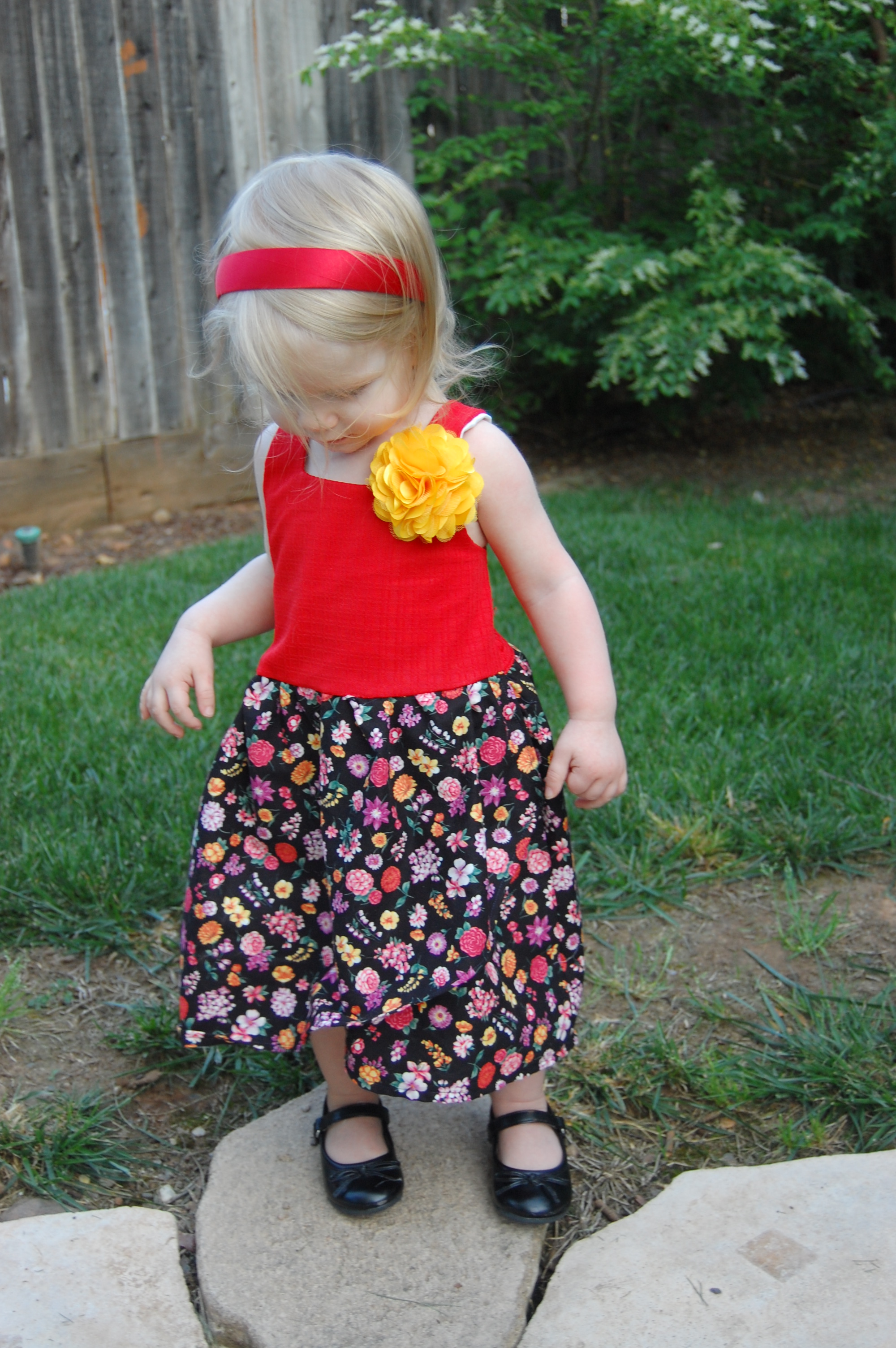 Both dresses were relatively easy to sew (yes, even with the initial shirring trip up – it’s not hard, just takes some patience and some fandangling to get the hang of it). I’d recommend this pattern for an advanced beginner or intermediate sewer. You’ll want to be familiar with understitching as well as shirring, and you will want to have some patience for hand stitching since the lining inside will be hand stitched to finish (soooo worth the way it looks though). I took in the first dress an inch on each side. Both dresses fit snuggly – so there’s no slipping of the thick straps, which is a good thing when you have an active toddler. When I make the dress again (oh yes, I have plans for this) I will probably go ahead and use the 18 months size since the 12 months bodice was just a little difficult to get on and off of my gal). I hand sewed on a flower from Sunshine Shoppe to each of the dresses, and voila! They were done.