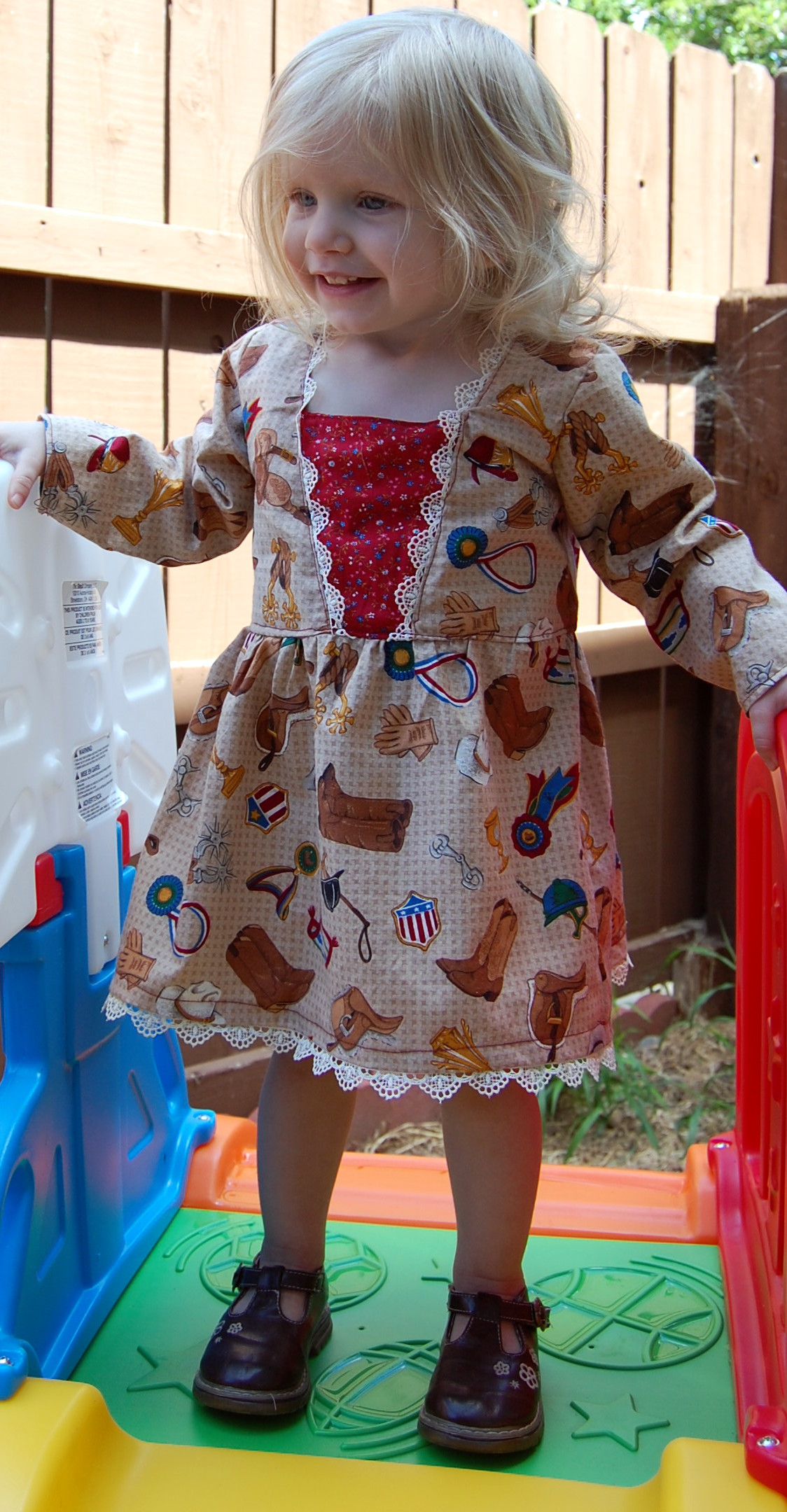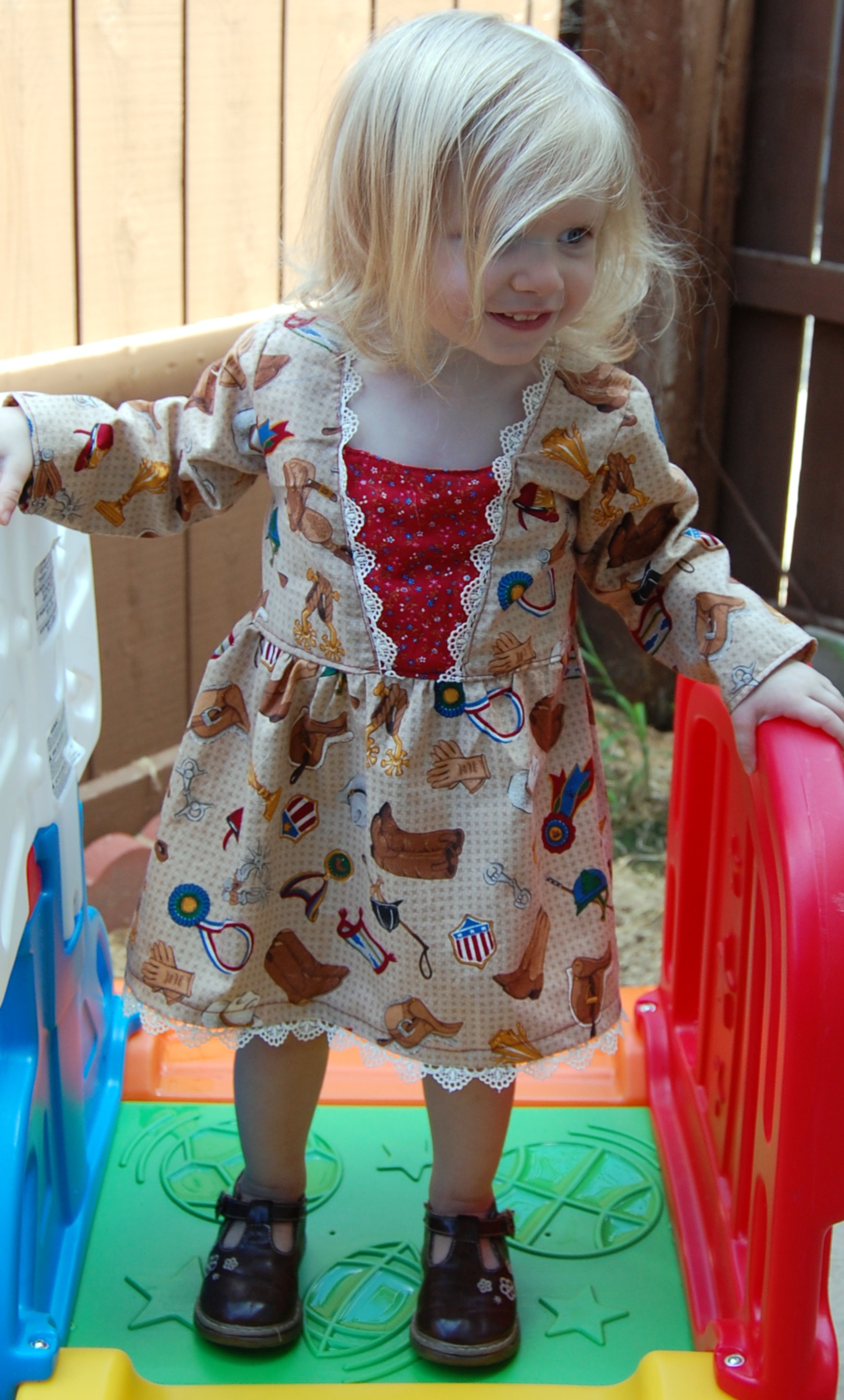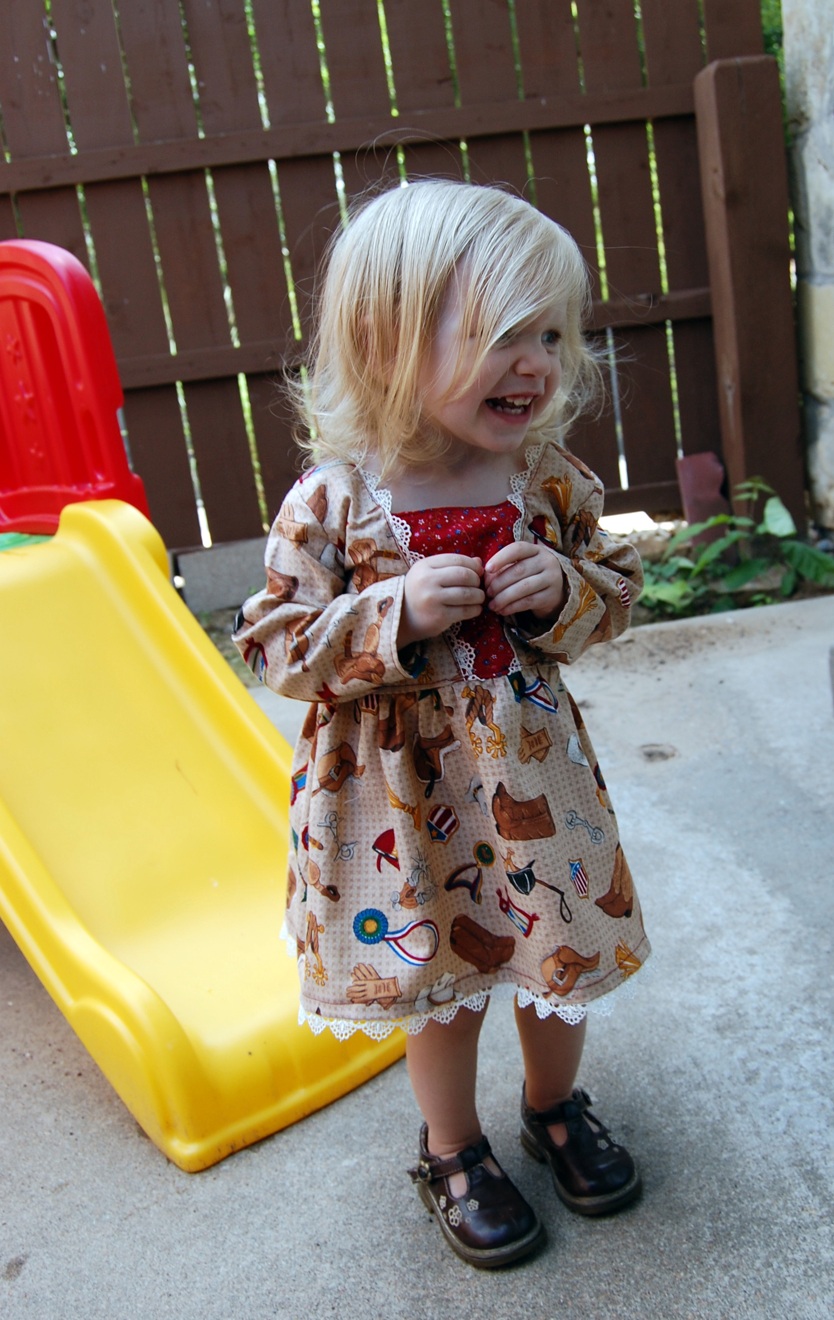 Bella Sunshine Designs’ Coffee Shop Lace Dress Ronda Bowen, August 22, 2015October 9, 2015 I’m so excited to share with you this new dress I made for Little Gal. It’s brand new from Bella Sunshine Designs (affiliate link), and yes, I was a pattern tester, and received the Coffee Shop Dress pattern in exchange for honest feedback on the pattern as I sewed it up. I really enjoy Melissa’s designs; you’ll remember I sewed up a bunch of Bow Tie Leggings and then the matching mother-daughter Kelly’s Twirl Skirts. So, when I saw that she was doing a new pattern test, I signed right up. After all, I figured, it would be a good motivator for unpacking my sewing machine. I already am planning on making at least one more dress from this pattern – I saw it and I thought, “This would be absolutely perfect as a Christmas dress!” So, you’ll be seeing another dress made from this in the not terribly distant future. The pattern directions are easy to follow, it’s definitely a more intermediate level pattern than those I’d tested previously. When you look at my photographs, you’ll notice that my edgestitching wasn’t the neatest it could be. I was able to unpack some of my sewing goodies, but not all…and my wonderful husband had to run out to get me a new buttonhole foot. Meanwhile, I had some bobbin and needle problems that I did solve by the time I got to the hem. When I do the dress again, I’ll size the chest down to a size 12 months (this is the 18 months size on my gal…she’s petite! In all, I think it’s a super-cute dress pattern. The mistakes are because, well…sometimes you’re trying to sew quickly because it took several days to get in a place where you had the printer unpacked and the sewing machine unpacked…and when you finally clear your schedule…bam…where’s the box with all the feet and extra needles and pins and…fabric scissors? My Little gal though? She LOVES this dress. She wore it all day the day I made it, and she keeps rooting through her laundry to carry it around the house and say “Pitty dess!” Silly girl. I may get her some cowgirl boots to go with it for a wild west thing we’re going to go to next weekend. 🙂 Here are some more pictures of her in the dress! Here’s the link – as of posting, the pattern is on sale for $6.50 at Bella Sunshine Designs (the promotion runs through 8/26/2015), and if you enter the code “CAFFEINE” you can save $3 on another pattern purchased at the same time! Share this:Share Share on Telegram (Opens in new window) Telegram Print (Opens in new window) Print Share on Reddit (Opens in new window) Reddit Share on WhatsApp (Opens in new window) WhatsApp Share on Tumblr (Opens in new window) Tumblr Email a link to a friend (Opens in new window) Email Share on LinkedIn (Opens in new window) LinkedIn Share on Pinterest (Opens in new window) Pinterest Share on Facebook (Opens in new window) Facebook Share on X (Opens in new window) X Like this:Like Loading... Related Hobbies and Crafts sewing