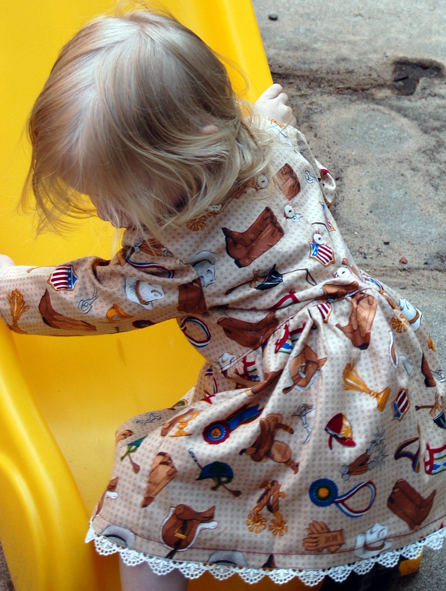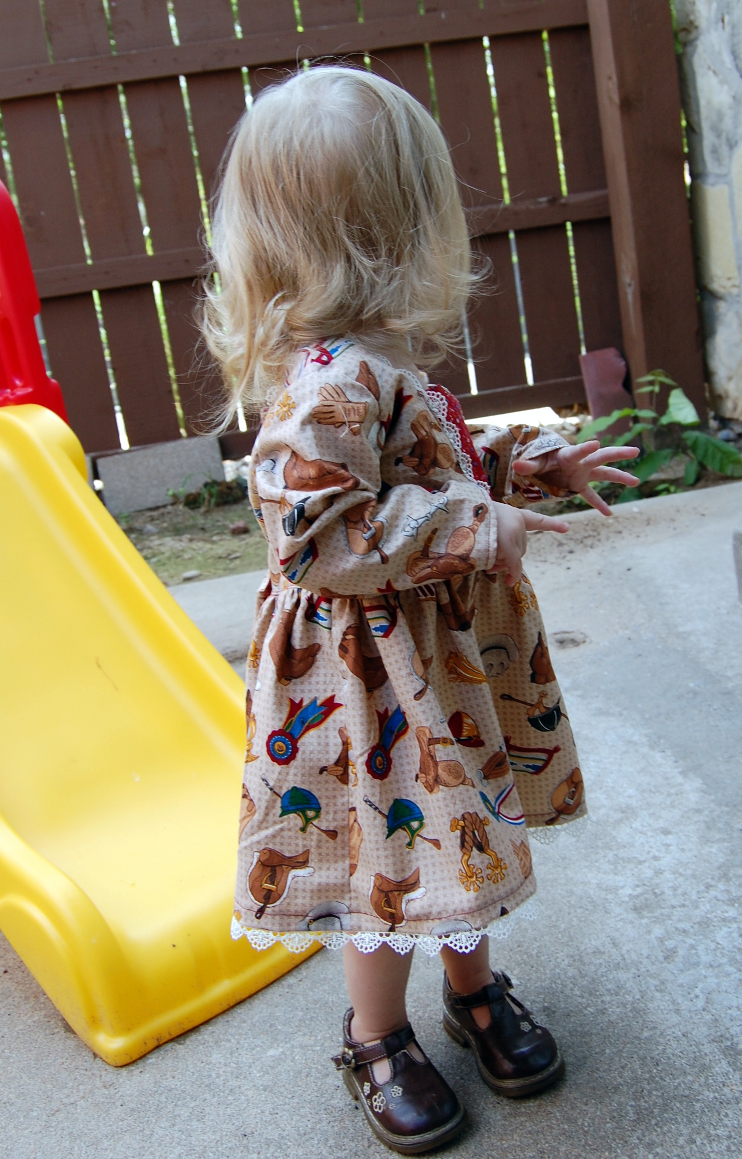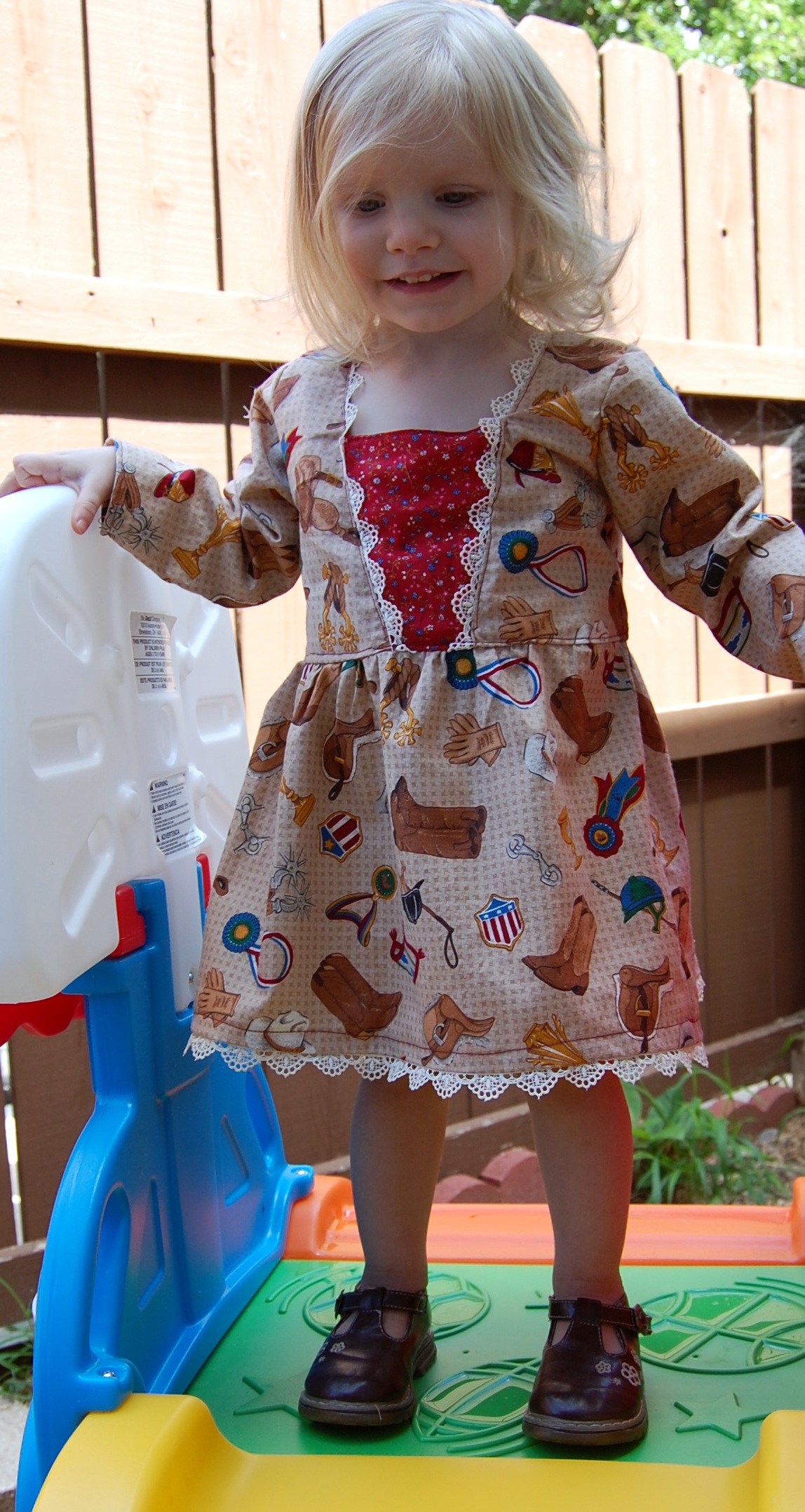Bella Sunshine Designs’ Coffee Shop Lace Dress Ronda Bowen, August 22, 2015October 9, 2015 I’m so excited to share with you this new dress I made for Little Gal. It’s brand new from Bella Sunshine Designs (affiliate link), and yes, I was a pattern tester, and received the Coffee Shop Dress pattern in exchange for honest feedback on the pattern as I sewed it up. I really enjoy Melissa’s designs; you’ll remember I sewed up a bunch of Bow Tie Leggings and then the matching mother-daughter Kelly’s Twirl Skirts. So, when I saw that she was doing a new pattern test, I signed right up. After all, I figured, it would be a good motivator for unpacking my sewing machine. I already am planning on making at least one more dress from this pattern – I saw it and I thought, “This would be absolutely perfect as a Christmas dress!” So, you’ll be seeing another dress made from this in the not terribly distant future. The pattern directions are easy to follow, it’s definitely a more intermediate level pattern than those I’d tested previously. When you look at my photographs, you’ll notice that my edgestitching wasn’t the neatest it could be. I was able to unpack some of my sewing goodies, but not all…and my wonderful husband had to run out to get me a new buttonhole foot. Meanwhile, I had some bobbin and needle problems that I did solve by the time I got to the hem. When I do the dress again, I’ll size the chest down to a size 12 months (this is the 18 months size on my gal…she’s petite! In all, I think it’s a super-cute dress pattern. The mistakes are because, well…sometimes you’re trying to sew quickly because it took several days to get in a place where you had the printer unpacked and the sewing machine unpacked…and when you finally clear your schedule…bam…where’s the box with all the feet and extra needles and pins and…fabric scissors? My Little gal though? She LOVES this dress. She wore it all day the day I made it, and she keeps rooting through her laundry to carry it around the house and say “Pitty dess!” Silly girl. I may get her some cowgirl boots to go with it for a wild west thing we’re going to go to next weekend. 🙂 Here are some more pictures of her in the dress! Here’s the link – as of posting, the pattern is on sale for $6.50 at Bella Sunshine Designs (the promotion runs through 8/26/2015), and if you enter the code “CAFFEINE” you can save $3 on another pattern purchased at the same time! Share this:Share Share on Telegram (Opens in new window) Telegram Print (Opens in new window) Print Share on Reddit (Opens in new window) Reddit Share on WhatsApp (Opens in new window) WhatsApp Share on Tumblr (Opens in new window) Tumblr Email a link to a friend (Opens in new window) Email Share on LinkedIn (Opens in new window) LinkedIn Share on Pinterest (Opens in new window) Pinterest Share on Facebook (Opens in new window) Facebook Share on X (Opens in new window) X Like this:Like Loading... Related Hobbies and Crafts sewing