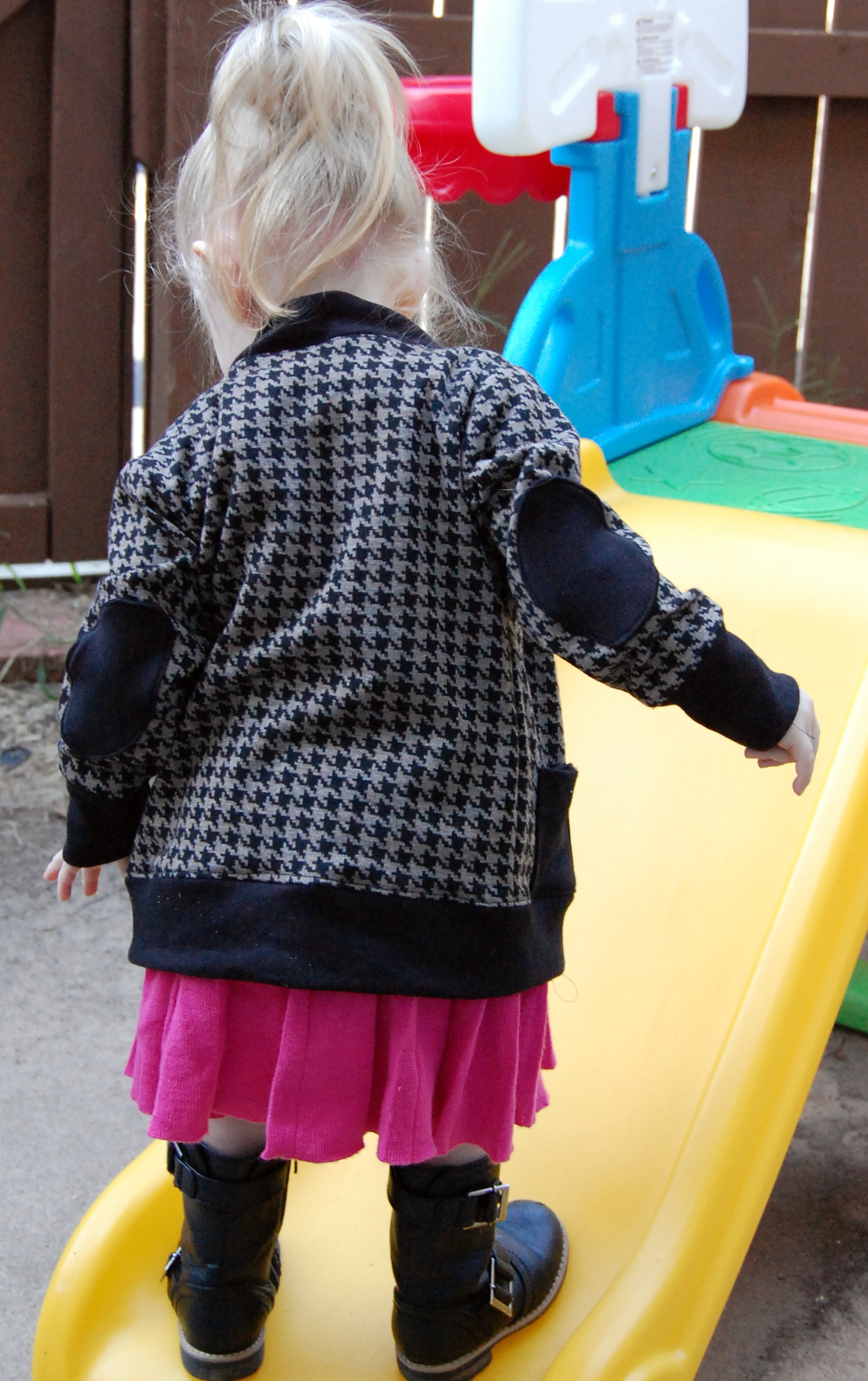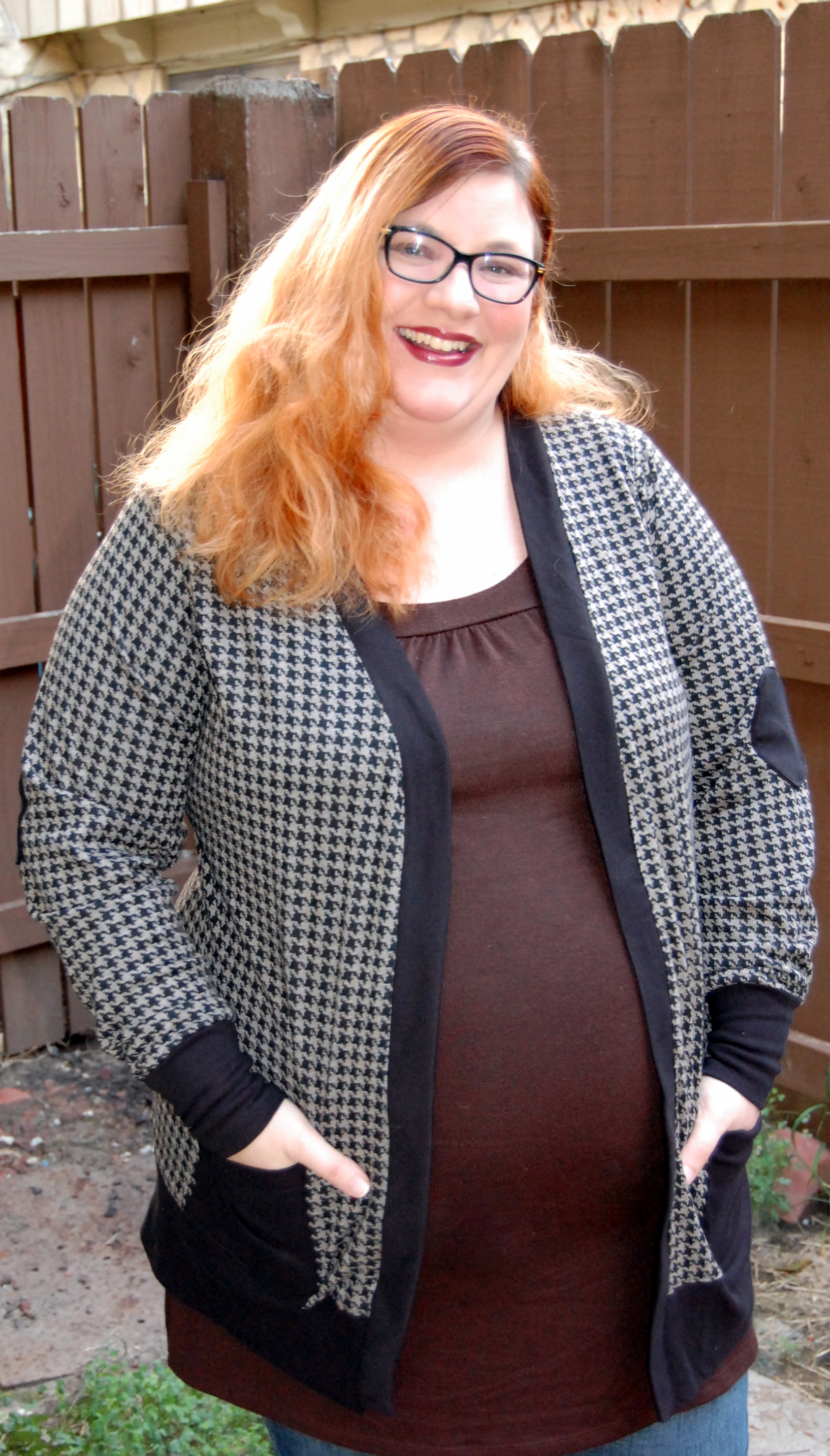 Patterns for Pirates’ Grandpa Cardi & Cpt. Mack’s Cardis Ronda Bowen, October 5, 2015October 5, 2015 Who doesn’t love a good cardigan? I know I’m a big fan, and I wear them a lot of the year. When Judy Hale at Patterns for Pirates did a tester call for a cardigan pattern for women and children, I was really excited and had to sign right up. I had some more of the houndstooth fabric left from when I made the Phresh Jeggings, and I figured it would make a great cardigan for my little gal – and – one for myself. This was an easy pattern to stitch up, and the fabric I worked with (from Hancock Fabrics) was amazing. I’ve found myself addicted to their knits, actually. They sew up really nice and feel great. Plus, I’ve found the customer service at our local Hancock Fabrics to be above and beyond what I’ve experienced in the past at fabric store chains.Setting aside my raving about finding fabric that my machine doesn’t want to eat, I love this pattern. You can make it with short, 3/4 or long sleeves, add pockets with bands (or no bands as I did), add a hem band, make it tunic or waist length, and eve add those professorial elbow patches. It’s an easy pattern to make. I have a purple argyle sweater knit that I’m planning to use to make Little Miss another cardigan from, and I have a couple of fabrics hanging out that I was thinking of using for a cardigan for myself. The fit, as always is great on Judy’s designs. I wish I’d graded out to a Plus 3X on the hips though, since they’ve decided they’re going to do their thing while I’m pregnant. But, I wasn’t planning on buttoning the cardigan anyway right now. I’ve been loving sewing patterns that allow me to make great basic wardrobe elements to mix and match to make a full wardrobe easily. Later this week, I’ll write up an excellent pattern I was able to test for making tights – and boy have I been making an army of tights for Little Miss. For now, let me just share the cardigans on the two of us. You can purchase them, if you like, at Patterns for Pirates’ website. The patterns are available as a bundle ($15.00), just the adult version $8.00, and just the kids’ version ($8.00). Without further pause, here are the pictures! Share this:Share Share on Telegram (Opens in new window) Telegram Print (Opens in new window) Print Share on Reddit (Opens in new window) Reddit Share on WhatsApp (Opens in new window) WhatsApp Share on Tumblr (Opens in new window) Tumblr Email a link to a friend (Opens in new window) Email Share on LinkedIn (Opens in new window) LinkedIn Share on Pinterest (Opens in new window) Pinterest Share on Facebook (Opens in new window) Facebook Share on X (Opens in new window) X Like this:Like Loading... Related Fashion & Beauty Hobbies and Crafts