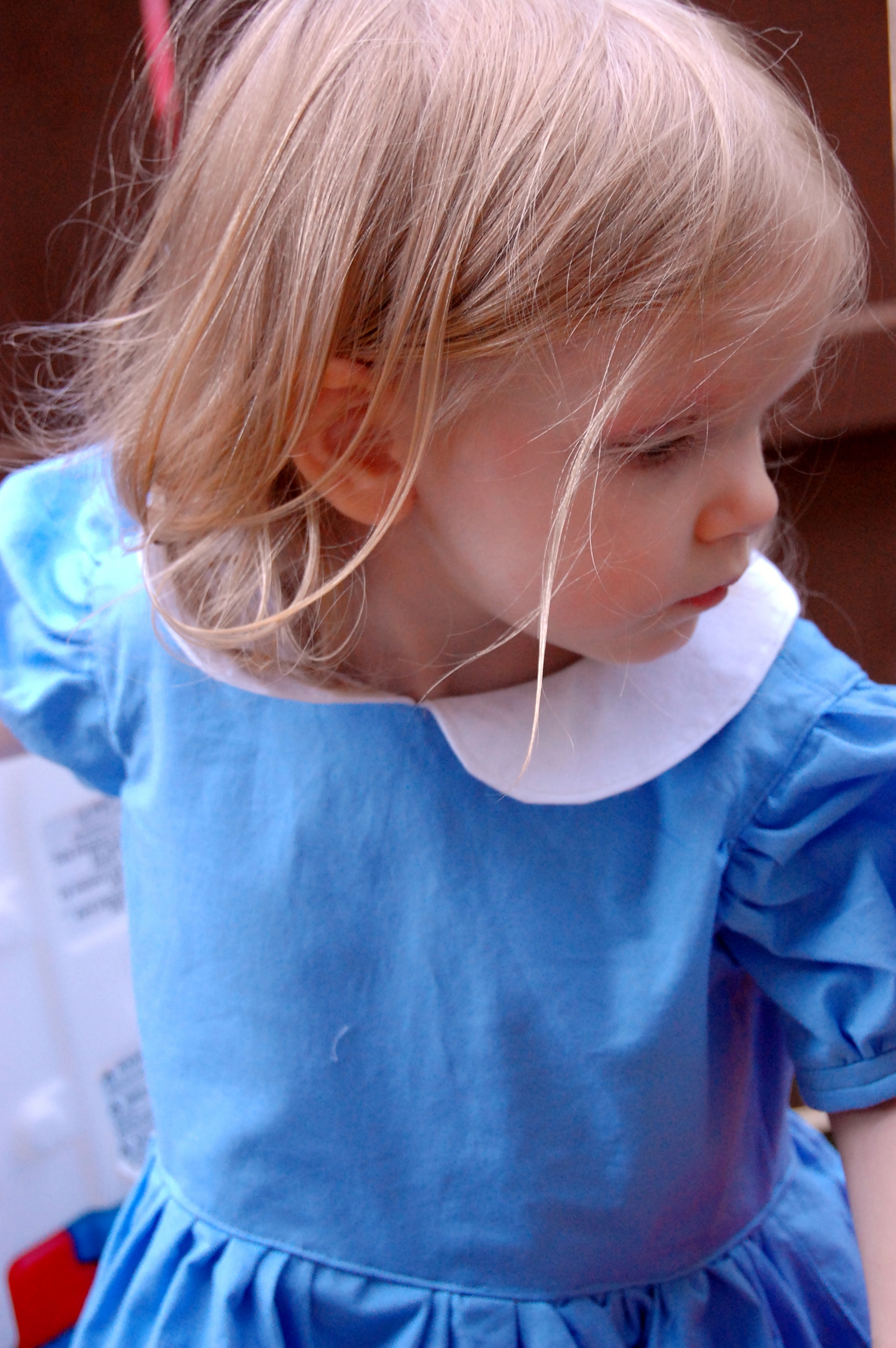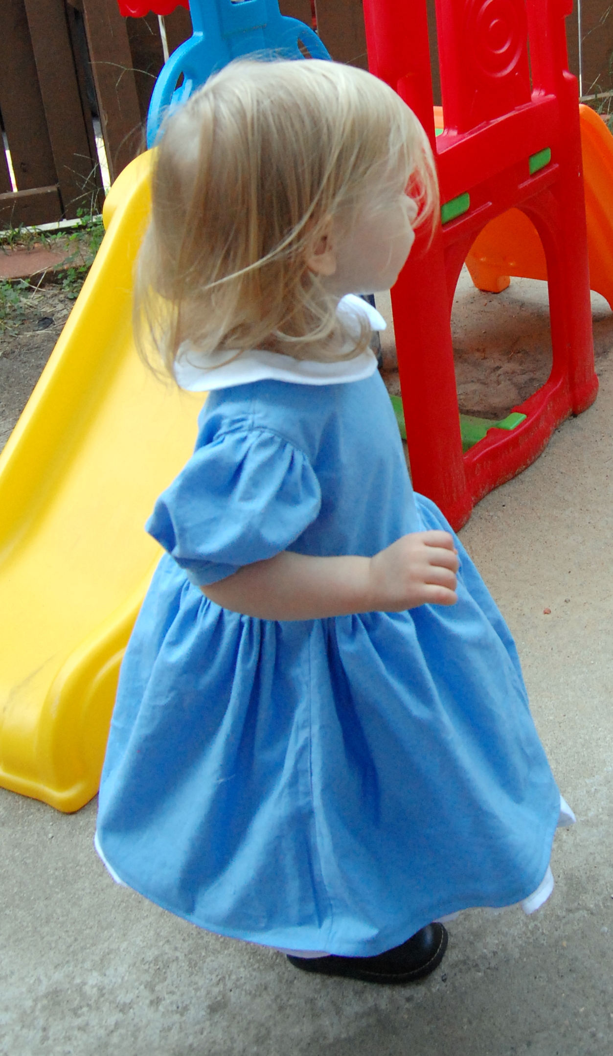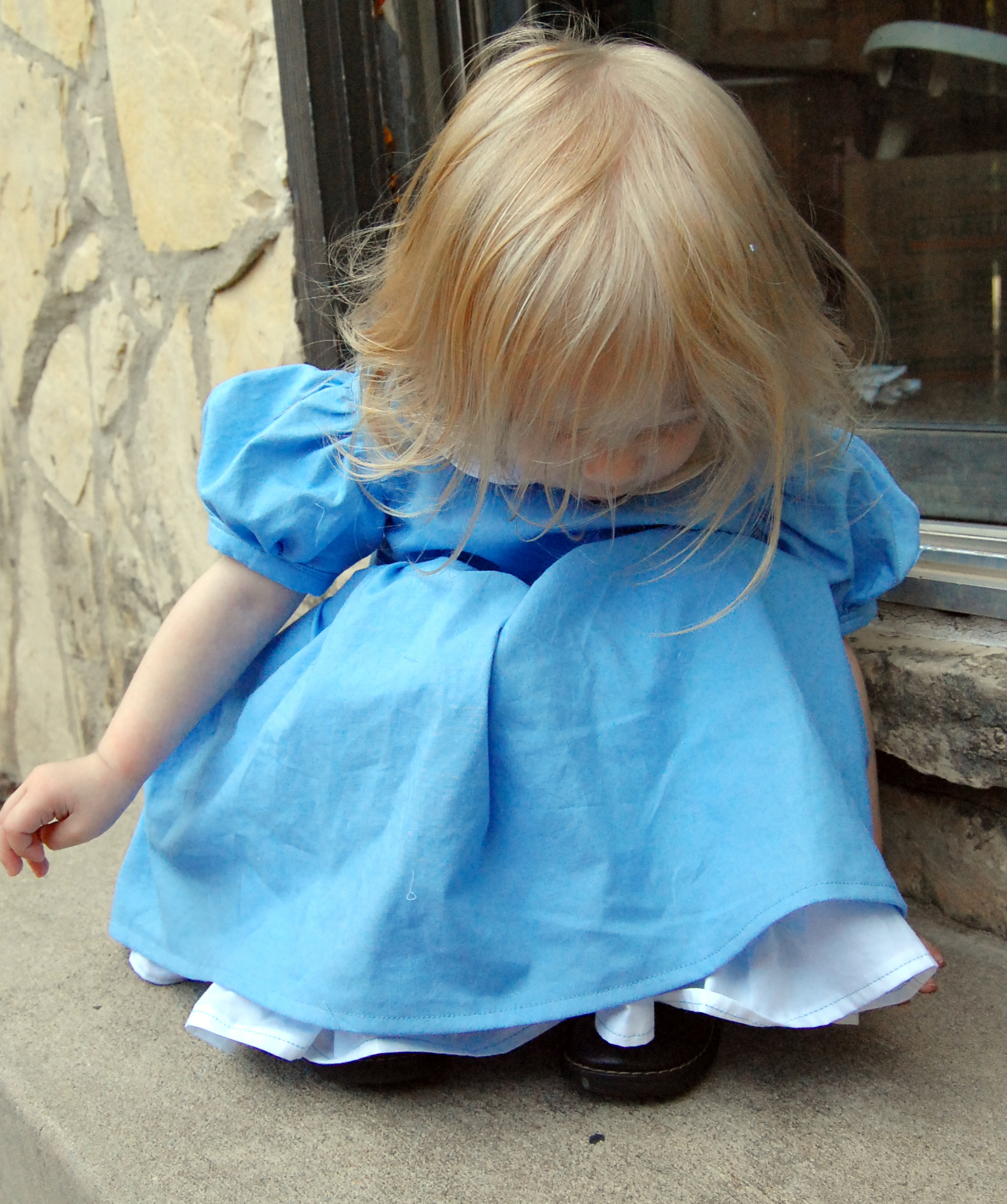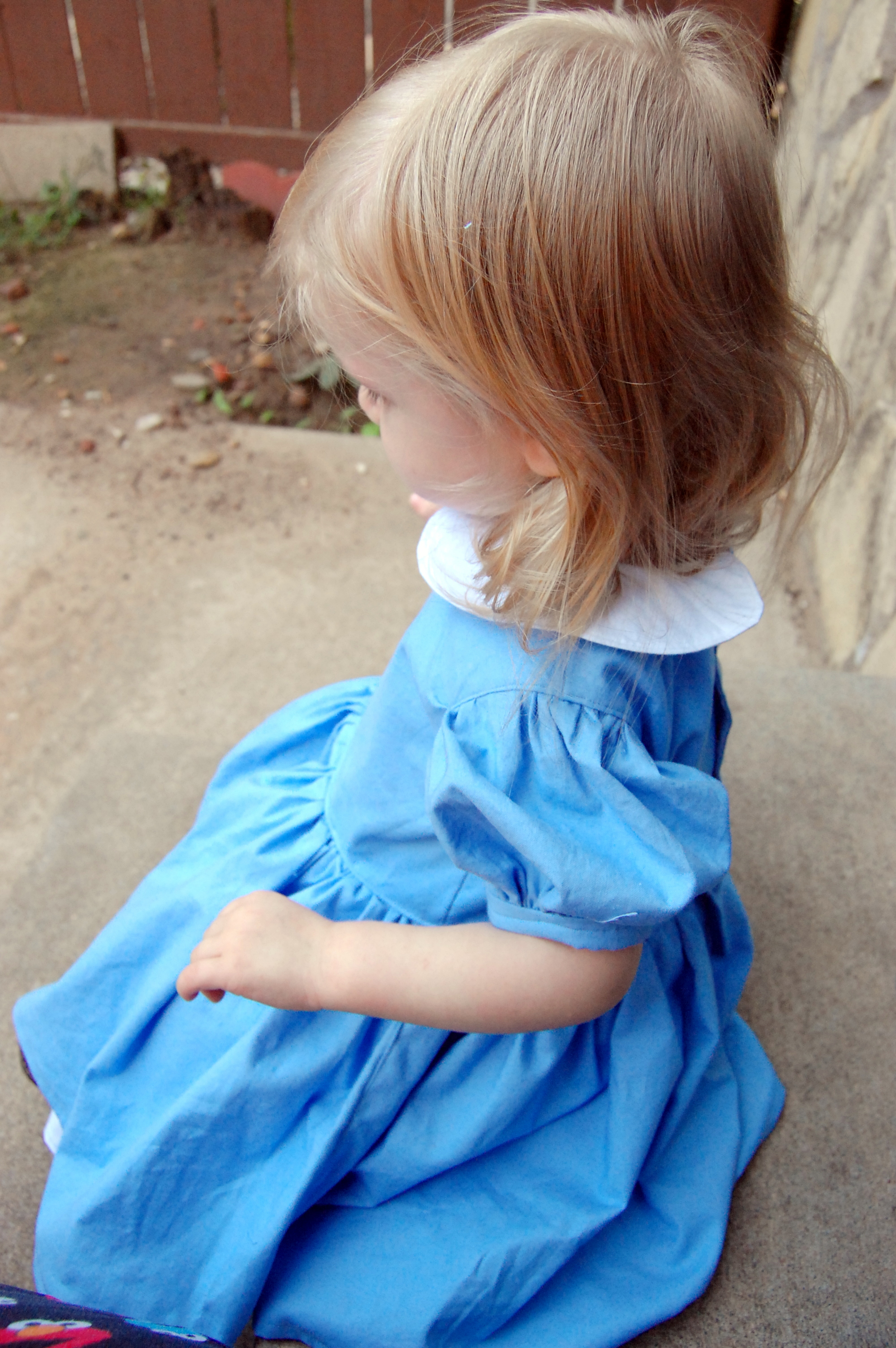 Mandy K Designs Knock Offs and Costume Hacks Tour: Alice in Wonderland Dress – Part I: The Dress Ronda Bowen, October 6, 2015October 6, 2015 I was inspired by Mandy K. Designs’ English Rose dress to create an Alice in Wonderland Halloween costume for Little Miss. I really can’t wait to share it with you, and I apologize sincerely for the delay in getting the pictures and the write-up of it up. I’ve been a bit under the weather lately, Little Miss is refusing to sleep at night, and I still have client work to take care of. All of that makes for a lot of excuses, but suffice it to say, I’ve been beyond exhausted lately. The English Rose Dress by Mandy K Designs I’ve been wanting to make an English Rose dress for a while now. I love the big bow and the full skirt, and I think it just looks like everything girl. There are some different options for the dress – you can have a scalloped collar, a Peter Pan collar, or no collar, you can have sleeves or no sleeves, you can have a hem with tulle, a ruffle, or scallopped ruffle, and you can have a simple or pleated sash. The pattern is $8.95, but if you purchase it now through October 11th, you can get 30% off with the code: MKDblogtour2015. (I received the pattern I’m talking about in exchange for participating in this tour; this is not an affiliate link). I’m also a big fan of Alice In Wonderland, and given Little Miss’s longish blonde hair (I still can’t believe she’s not even 2 yet), I thought that this dress would make a great Alice in Wonderland-style dress for Halloween. I’ve made a pair of stretch lace tights and I will make a black headband to accompany the dress for her costume. I know that I have some blue and white cotton yardages in my sewing stash, but we haven’t quite gotten around to unpacking that yet. So, we wandered to Hancock Fabrics, and I picked up what I needed there, along with some clear pearl-style buttons for the back of the dress. I decided I wanted to do the dress with the Peter Pan collar, sleeves,l ruffle, and simple sash with the big detatchable bow on the back. I will be honest, I got a late start on the dress due to sleeping patterns, illness, AND waiting to look through the bins and boxes of fabric to avoid purchasing fabric I knew I already had in reserve. I’ve finished the dress, I need to make the sash and bow still. I LOVE how it looks so far. I will post a part 2 talking about the sash and bow, as well as the headband and tights in the next couple of days as soon as I am able to. There’s a costume event at the local botanical gardens, and we must make a requisite trip to a pumpkin patch – so what better place to debut her full costume? The dress itself is easy to sew, although my fingers are really wishing I’d chosen a fabric with a bit lighter weight. There’s a lot of top-stitching and a lot of gathering. Both of these take a while if you want to do them right – when top stitching, SLOW DOWN! It’s not a race. seriously. I love fast sewing as much as the next person, but if you want straight topstitching that makes your garment look more professional? Don’t put the sewing machine pedal to the metal. Gathering just takes a while if you’re careful not to break the thread – especially when there’s a lot of gathering. If you have a tip on how to gather faster, I’d LOVE to hear it. For the skirt, I wound up gathering it by hand before attaching it to the dress because of how thick the layers of fabric were at that point. The instructions are easy to follow. There are many steps to this pattern, and Mandy K. Designs does a great job of explaining each of these steps. I also really like the way she does the lining and the plackets – although the seam where the skirt hits the bodice isn’t hidden – unless you first press under 1/4″ of the lining fabric and sew the skirt only to the bodice main fabric, then either catch the lining fabric while topstitching -OR- handstitching the bodice closed at the skirt. The only thing I was unsure of is my collar – it’s a bit stiff. I think because of the thickness of the white cotton shirting fabric I used, I probably could have gotten away with no interfacing on the collar. I veered away from making a pinafore for the dress in true Alice in Wonderland style – I figure that the blue and white with the collar, ruffle, and (when finished) bow and sash will make the dress perfect as is. I feel like if I tried to add anything else, it would be too much on my little gal. Now, for the moment you’ve been waiting for: Here’s the dress! In a few days, please come back, and you can see the whole ensemble put together, plus I’ll talk about a great tights pattern and what I used to make the headband to match. Meanwhile, I encourage you to take a look at the other stop on the Mandy K Designs Knock Offs and Costume Hack’s tour for today: Sibling Rivalry. Here’s a complete list of all of the stops on the tour: Sibling Revelry * Wining Wife Rebel & Malice * Call Ajaire * Sprouting JubeJube Lulu & Celeste * Phat Quarters Sew Out of Control * Paisley Roots * Manning The Machine Share this:Share Share on Telegram (Opens in new window) Telegram Print (Opens in new window) Print Share on Reddit (Opens in new window) Reddit Share on WhatsApp (Opens in new window) WhatsApp Share on Tumblr (Opens in new window) Tumblr Email a link to a friend (Opens in new window) Email Share on LinkedIn (Opens in new window) LinkedIn Share on Pinterest (Opens in new window) Pinterest Share on Facebook (Opens in new window) Facebook Share on X (Opens in new window) X Like this:Like Loading... Related Hobbies and Crafts Uncategorized