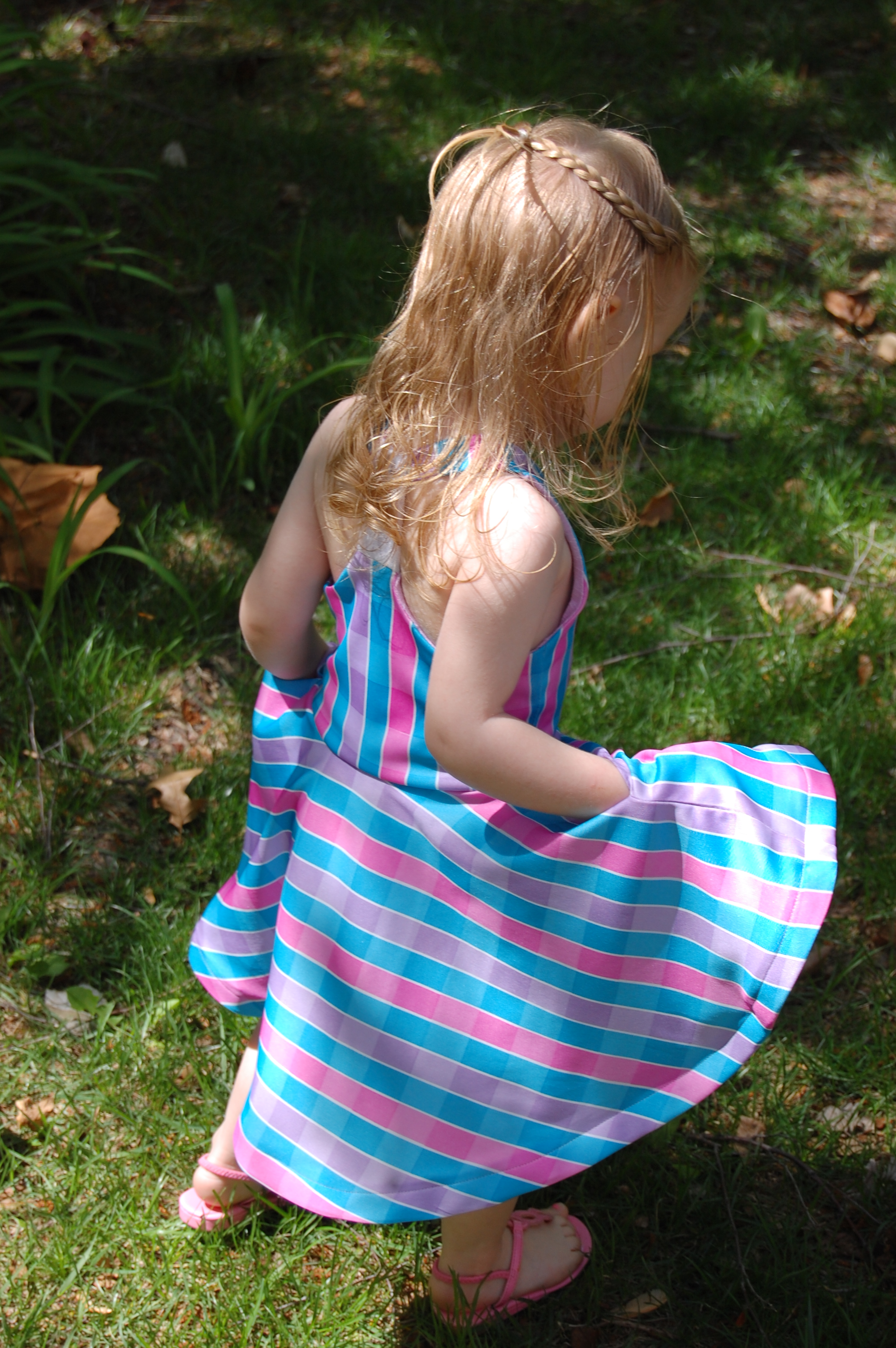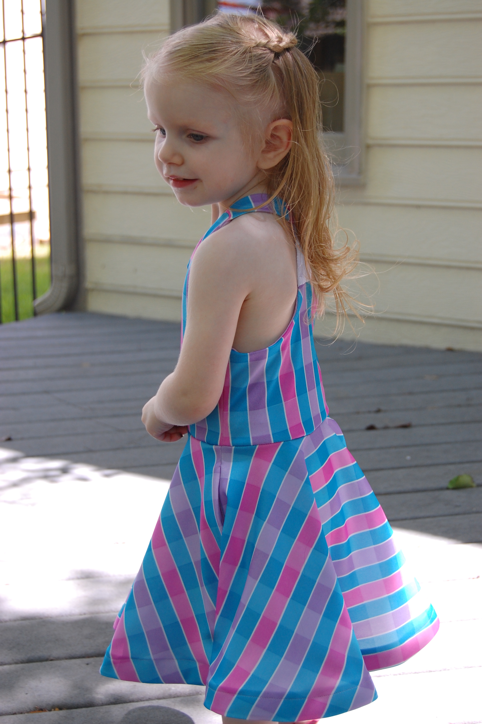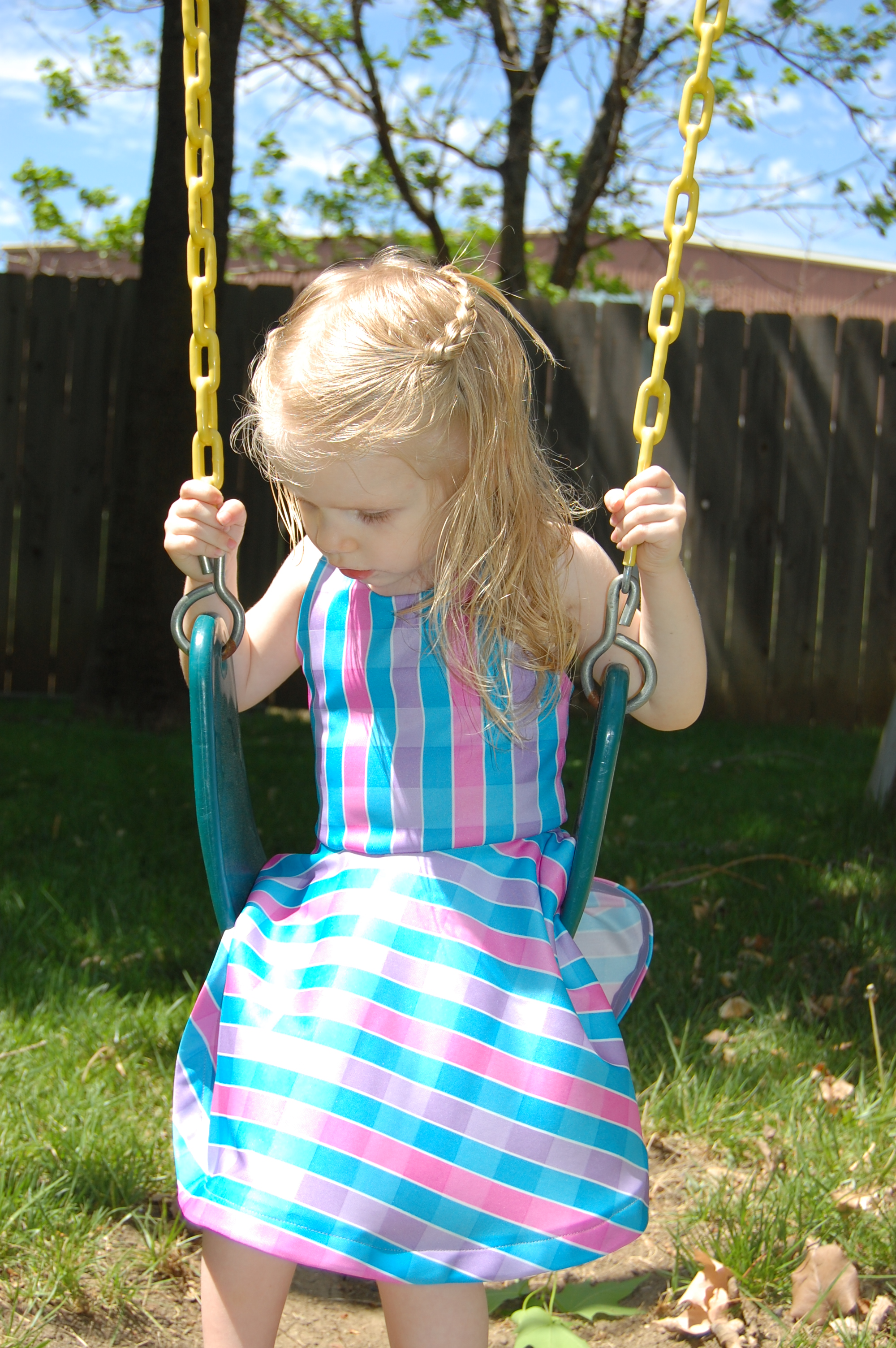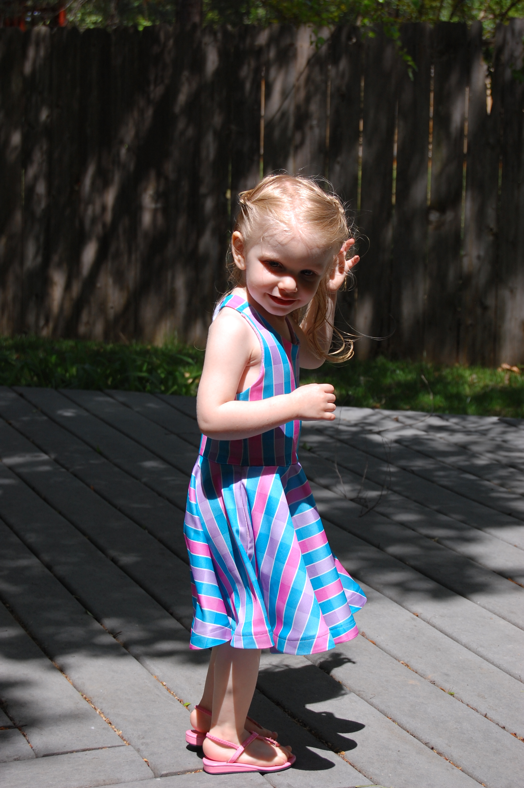 The Solis Dress by Sofilantjes Ronda Bowen, May 4, 2016May 5, 2016 So we’ve all had some sort of flu/cold/plague (HAH) thing this week, and I’d planned to get this post up before now. I love this dress! Sofilantjes (you’ve seen my Liv Skirt, Otium Top, Iridis Dresses, and Brueram Dresses) has come out with this new pattern – the Solis Dress (affiliate link). There are three different versions of the dress – a circle skirt, a pleated skirt, and a pleated tunic-length skirt. Marie-claude Bélanger wrote a post on how to make a peplum top on her blog, MCB Creations. I received the pattern in exchange for honest feedback during the pattern testing process. My little gal is thin and tall, so I made the size 12 months width while blending the pattern to the size 2y length. The best part of this pattern is the little back detail you can see to the left. I decided to use a stretch lace for the T-bar accent, both to make it stand out, and to add a little something extra. The dress is knit, and fully lined. I used a cotton jersey to line vintage knit fabric. I found this fabric while out and about, saw it, and thought, “This is the perfect fabric for making the Sofilantjes dress!” It sews up pretty quickly. You do need to be comfortable sewing with knits, and it helps if you have hemmed a curve before. You can either finish with a rolled hem, a blind hem, or do what I did and use bias tape for the hem. It made the dress kind of flare out in a cute way. It took me a few hours to make the dress, including with a few interruptions from two very very cute little ones. It would be a great pattern to use with knit panels. It’s also nice for fabrics you want to showcase. There were some really great versions of this dress that came out during testing. I’ve got to think of another fabric I want to use (which will probably happen when I unpack my fabric). After I made the dress and put it on my gal for pictures, she needed to wear it for nearly 3 days straight. I’m taking that as a sign of success. You can purchase the pattern for the dress at Sofilantjes (affiliate link) for $8.95. Be on the lookout at Ronda B. Handmade, as I will be offering the ability to order a custom version of this dress to fit your little gal soon! In the meantime, here are more photos. Share this:Share Share on Telegram (Opens in new window) Telegram Print (Opens in new window) Print Share on Reddit (Opens in new window) Reddit Share on WhatsApp (Opens in new window) WhatsApp Share on Tumblr (Opens in new window) Tumblr Email a link to a friend (Opens in new window) Email Share on LinkedIn (Opens in new window) LinkedIn Share on Pinterest (Opens in new window) Pinterest Share on Facebook (Opens in new window) Facebook Share on X (Opens in new window) X Like this:Like Loading... Related Hobbies and Crafts Uncategorized