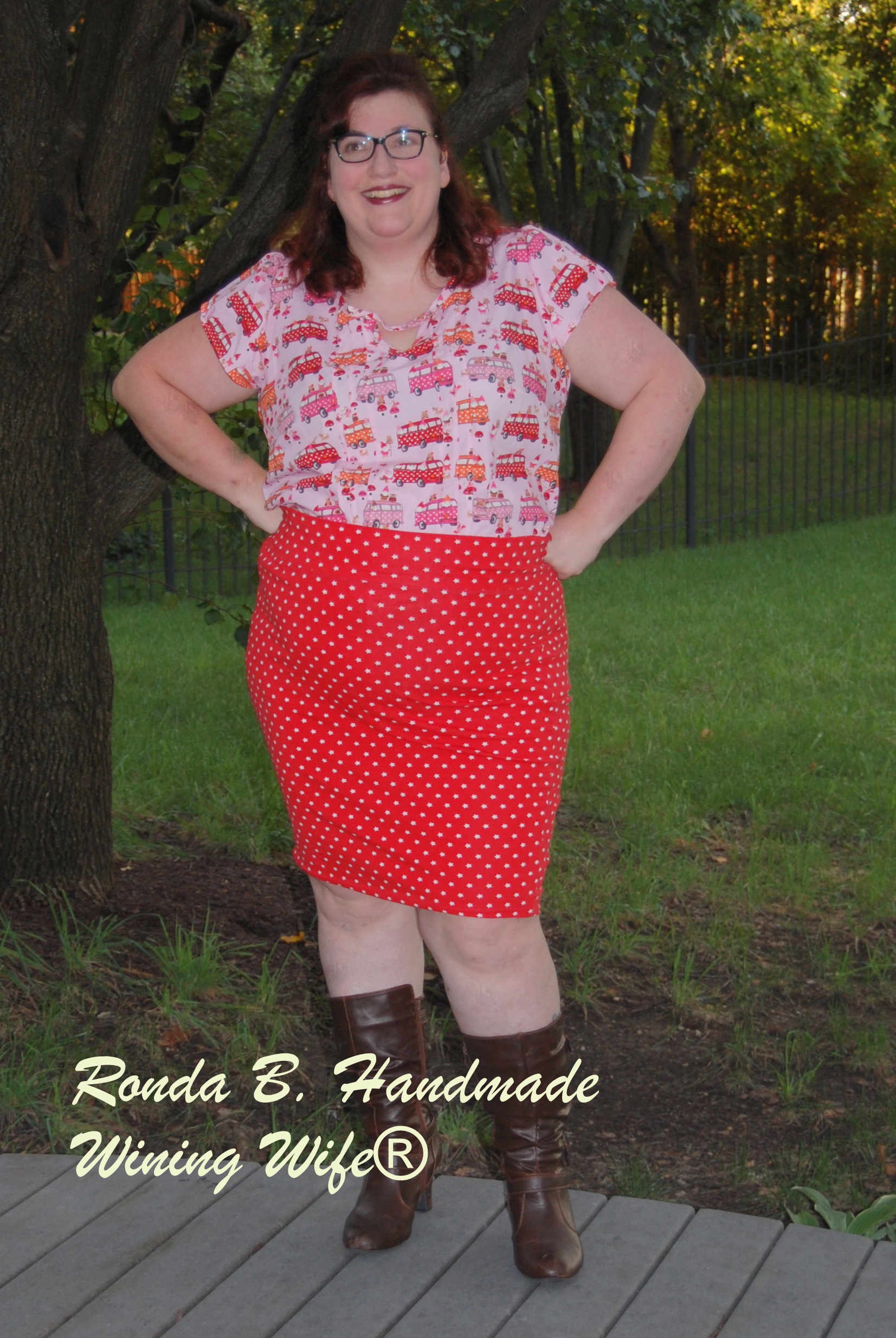 SewLong Summer Blog Tour: Lauren Shirt and Pirate Pencil Skirt Ronda Bowen, September 16, 2016February 14, 2019 I am pleased to announce my participation in the SewLong Summer Blog Tour. There are many very talented seamstresses on this tour, and I’m proud to be participating in it. For the tour, I made two pieces that are transitional. Because it’s still pretty warm here in Wichita, I wanted something I could wear now and wear later. I originally picked out the Gnomes on the Bus fabric from Mabel Madison because I thought it would be cute to wear an outfit made with it to a local brewery with (literally) the best beer I’ve ever had, Hopping Gnome Brewing Company. That plan changed upon making the outfit for reasons I’ll get to soon. I decided to go with the Made for Mermaids Mama Lauren pintuck shirt and the Patterns for Pirates Pirate Pencil Skirt. (Affiliate Links) I paired the outfit with brown boots I purchased from Maurice’s. It’s one of the few stores, I’ve found, that carry size 12 women’s shoes – though more and more stores are making that move all the time. As it gets colder, I’ll add a pair of tights made with The Wolf and The Tree’s Gazelle Ladies Footed Tights and my trusty red Seamwork Oslo cardigan I made last fall. P4P Pirate Pencil Skirt I started with the skirt. This is actually the third Pirate Pencil Skirt I’ve made. It takes less time to sew it than it does to cut it out. I used Stenzo jersey knit. It turned out really great, I think – only it’s a little loose on me. I lost some inches around my waist and hips between cutting this and the shirt and sewing them up. Let this be a lesson to you! I’m still happy with how it turned out, and it’s bright, and probably a lot louder than most things I normally wear. M4M Lauren Shirt When I was talking with Melissa of Tales of a Tester, she totally sold me on this pattern. It’s cute, it’s an easier sew with just enough details to make it interesting, but not so many that it wouldn’t work with a busy print like the Gnomes on the Bus. The pintucks are all about being able to sew a very straight line and press well. The keyhole binding takes patience (and a good press as well). I wasn’t sure about it until I got the whole neckband on and put it on. Once it was on, and I tucked it in, I was in love. I think it will go great with jeans and it will be nice with leggings and a belt. I kind of felt like I was swimming in it as well, but that’s not a bad thing. Photos of my finished garments (keep reading to the end for a giveaway and discount codes.) Be sure to check out today’s posts from the tour: Sewing by Ti, Musings of a Seamstress, Tales of a Tester, Almost a hippy, At Margareta’s Haus, Sewing A La Carte, Birds Of A Kettle Our awesome bloggers Sept. 12th Sewing by Ti, Cindy Parrett, Sewing Vortex, Renata Laura, Couturious, Nina Makes Sept. 13th mahlicadesigns, Musings of a Seamstress, Rainy Day Sewing, Sprouting Jube Jube, Sewing A La Carte, Anne-Mari Sews Sept. 14th AppleGreen Cottage, mahlicadesigns, Kaleidothought, PrettiModesti, Olive Ashby, Sewing Bee Fabrics Sept. 15th Lulu & Celeste, Diane Cullum of Two Chicklets, Adventures With Bubba and Bug, Wining Wife, The Pumpkin Room, Sewing A La Carte, Anne-Mari sews Sept. 16th Sewing by Ti, Musings of a Seamstress, Tales of a Tester, Almost a hippy, At Margareta’s Haus, Sewing A La Carte, Birds Of A Kettle Rafflecopter Giveaway a Rafflecopter giveaway Fun discounts and coupon codes from our sponsors: Zierstoff Patterns 20% off patterns Code: zierstoffpatterns20 Ends 9/17/16 Blue Dot Patterns 25% off patterns Code: SewLongSummer Ends 9/17/16 On the Cutting Floor 50% off patterns Code: SEWLONG Ends 9/17/16 Share this:Share Share on Telegram (Opens in new window) Telegram Print (Opens in new window) Print Share on Reddit (Opens in new window) Reddit Share on WhatsApp (Opens in new window) WhatsApp Share on Tumblr (Opens in new window) Tumblr Email a link to a friend (Opens in new window) Email Share on LinkedIn (Opens in new window) LinkedIn Share on Pinterest (Opens in new window) Pinterest Share on Facebook (Opens in new window) Facebook Share on X (Opens in new window) X Like this:Like Loading... Related Hobbies and Crafts blog tour