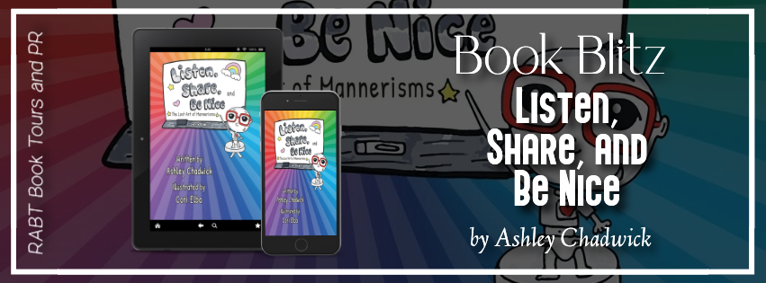 Books & Reading Book Blitz: Listen, Share, and Be Nice by Ashley Chadwick Ronda Bowen, November 29, 2023November 29, 2023 the lost art of mannerisms Children’s Book Date Published: May 21, 2023 Publisher: MindStir Media Cori Elba (Illustrator) These three words: Listen, Share and be Nice can be basic cornerstones for your child’s growth and development. Teaching your toddler is a daily routine. Using the same mannerisms… Continue Reading